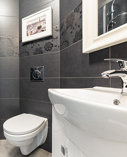 広々としたトイレで、自動センサー付きなので遠ざかれば勝手に水が流れます。